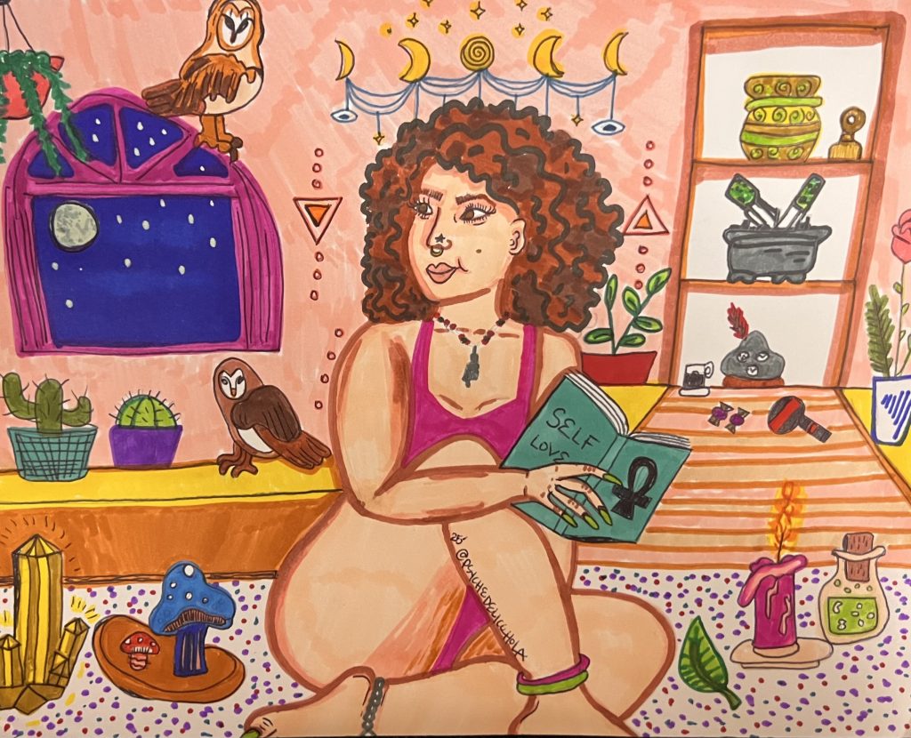 A higher self portrait in my art studio/home. A journey of self love realization and healing ❤️????